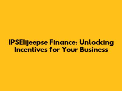 IPSEIijeepse Finance: Unlocking Incentives For Your Business