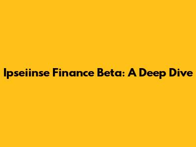 Ipseiinse Finance Beta: A Deep Dive