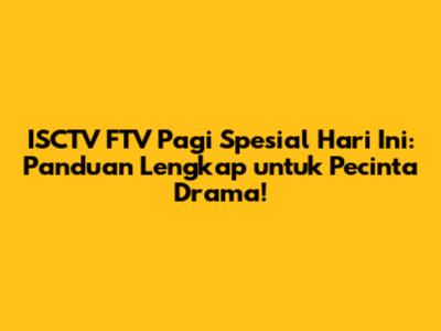 ISCTV FTV Pagi Spesial Hari Ini selalu menjadi teman setia bagi banyak orang di pagi hari. Guys, siapa sih yang nggak suka memulai hari dengan cerita-cerita seru, bumbu percintaan, dan drama yang bikin penasaran? Nah, buat kalian yang pengen tahu lebih banyak tentang FTV pagi spesial di ISCTV, mulai dari jadwal tayang, sinopsis cerita, hingga informasi menarik lainnya, kalian berada di tempat yang tepat! Mari kita kulik tuntas tentang dunia FTV pagi spesial yang satu ini!
