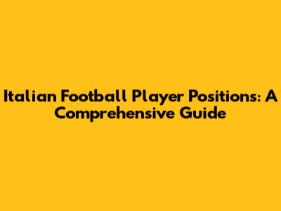 Italian Football Player Positions: A Comprehensive Guide