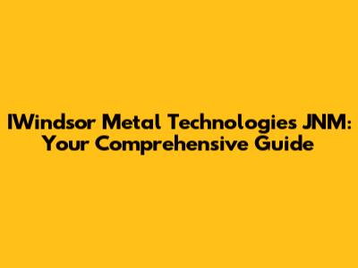 IWindsor Metal Technologies JNM: Everything You Need To Know