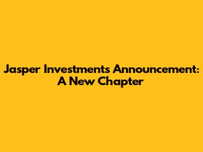 Jasper Investments: Exciting News & Future Ventures