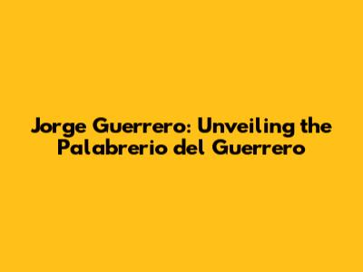 Jorge Guerrero: Unveiling The Palabrerio Del Guerrero