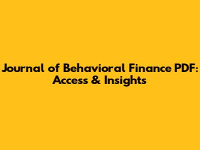 Journal Of Behavioral Finance PDF: Access & Insights