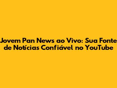 Não perca mais tempo procurando notícias em outros lugares. Acesse agora mesmo o canal da Jovem Pan News no YouTube e fique por dentro de tudo o que está acontecendo no Brasil e no mundo. A Jovem Pan News ao vivo está sempre pronta para te manter informado, com credibilidade e profissionalismo. Fique ligado na programação, participe dos debates e não deixe de compartilhar as notícias com seus amigos e familiares. A informação de qualidade está ao seu alcance, basta um clique.