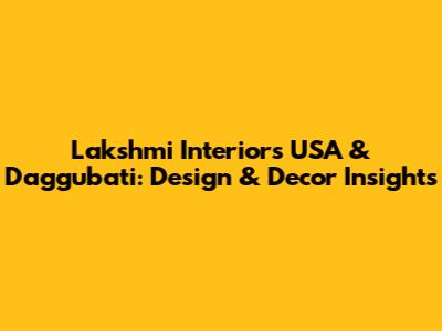 Lakshmi Interiors USA & Daggubati: Design & Decor Insights
