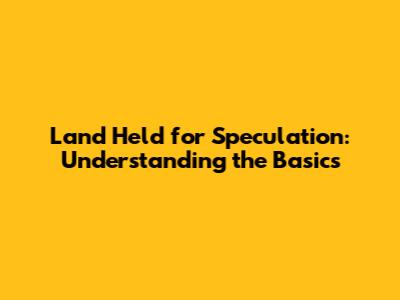 Land Held For Speculation: Understanding The Basics