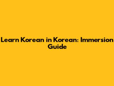 Learn Korean In Korean: Immersion Guide