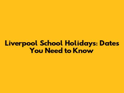 Key Dates for Liverpool School Holidays