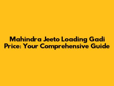 Hey guys! Looking for a compact yet powerful loading vehicle? Let's dive deep into the Mahindra Jeeto, a popular choice for small business owners and entrepreneurs. This guide covers everything you need to know about the Mahindra Jeeto loading gadi price, its features, specifications, and why it might be the perfect fit for your business needs.