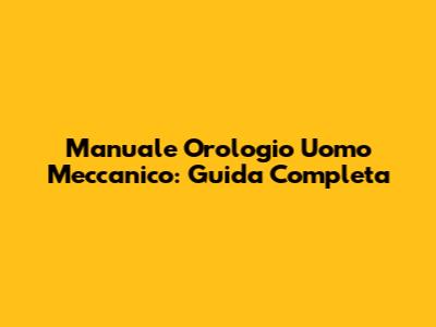 Manuale Orologio Uomo Meccanico: Guida Completa
