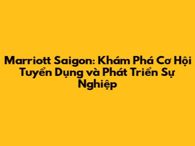 Marriott Saigon: Tuyển Dụng & Cơ Hội Nghề Nghiệp Hấp Dẫn