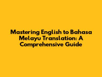 Mastering English To Bahasa Melayu Translation
