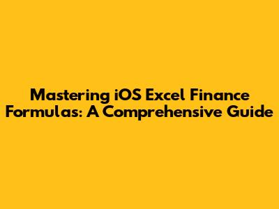 Mastering IOS Excel Finance Formulas: A Comprehensive Guide