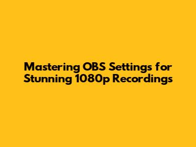 Mastering OBS Settings For Stunning 1080p Recordings