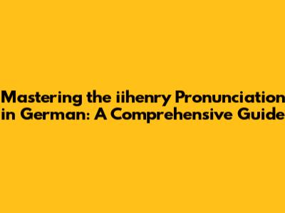 Mastering The 'iihenry' Pronunciation In German: A Comprehensive Guide
