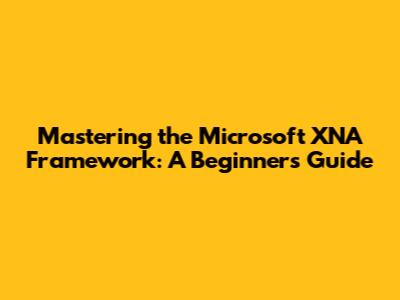 Mastering The Microsoft XNA Framework: A Beginner's Guide