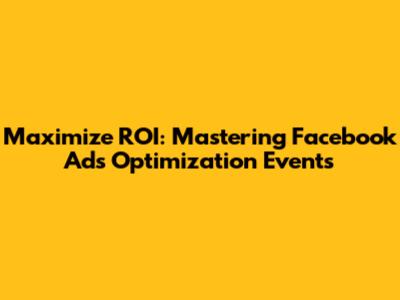 Maximize ROI: Mastering Facebook Ads Optimization Events