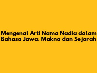 Mengenal Arti Nama Nadia Dalam Bahasa Jawa: Makna Dan Sejarah