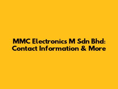 MMC Electronics M Sdn Bhd: Contact Information & More