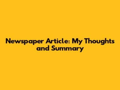 Newspaper Article: My Thoughts And Summary