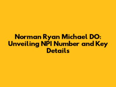 Norman Ryan Michael DO: NPI Number & Key Details