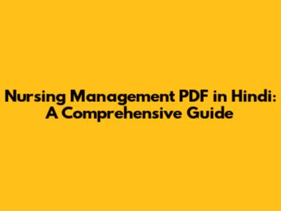 Nursing Management PDF In Hindi: A Comprehensive Guide