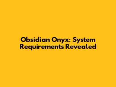 Obsidian Onyx: System Requirements Revealed