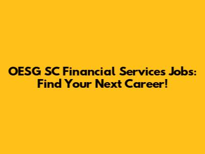OESG SC Financial Services Jobs: Find Your Next Career!