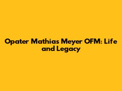Opater Mathias Meyer OFM: Life And Legacy