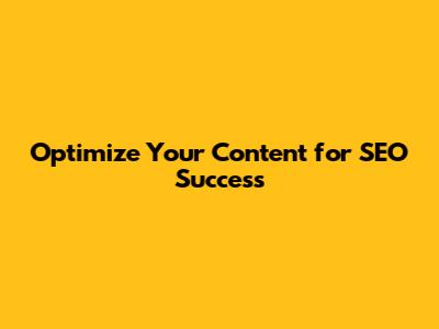 Optimize Your Content For SEO Success