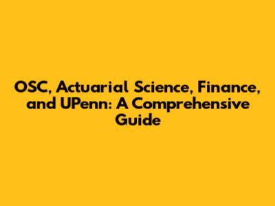 OSC, Actuarial Science, Finance, And UPenn: A Comprehensive Guide