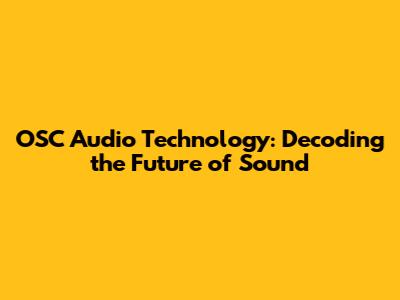 OSC Audio Technology: Decoding The Future Of Sound