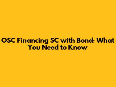 OSC Financing SC With Bond: What You Need To Know
