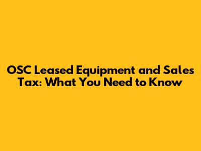 OSC Leased Equipment & Sales Tax: What You Need To Know