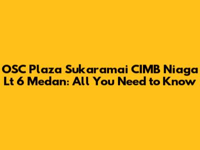 Alright, guys, let's dive into everything you need to know about OSC Plaza Sukaramai CIMB Niaga Lt 6 in Medan. Whether you're a local or just planning a visit, this guide will give you the lowdown on what to expect, how to get there, and why it's a significant spot. We'll cover the basics, the surrounding area, and some insider tips to make your trip smooth and productive. So, buckle up and get ready to explore!