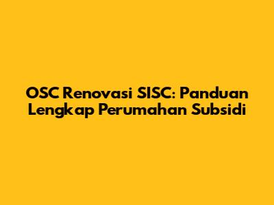 OSC Renovasi SISC: Panduan Lengkap Perumahan Subsidi