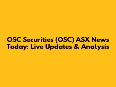 OSC Securities (OSC) ASX News: Live Updates & Analysis