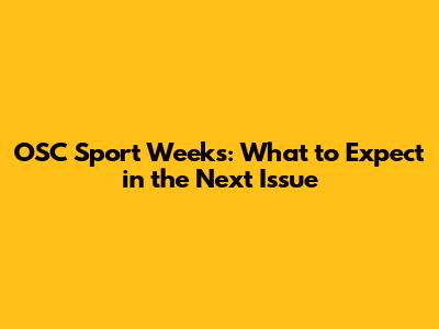 OSC Sport Weeks: What To Expect In The Next Issue