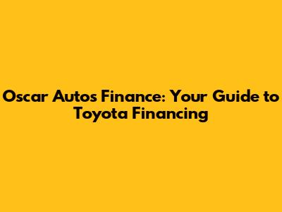 Hey guys, let's dive into the world of Oscar Autos Finance and specifically, how it helps you get behind the wheel of a shiny new Toyota! Finding the right financing can sometimes feel like navigating a maze, but don't worry, we're here to break it down and make it super easy. This guide is all about helping you understand the ins and outs of Oscar Autos Finance, the options available, and how you can make the best choices for your budget and needs. We'll cover everything from the basics of car loans to the specific financing programs offered by Oscar Autos for your dream Toyota. So, whether you're eyeing a fuel-efficient Prius, a rugged Tacoma, or a family-friendly Highlander, we've got you covered. Let's get started!