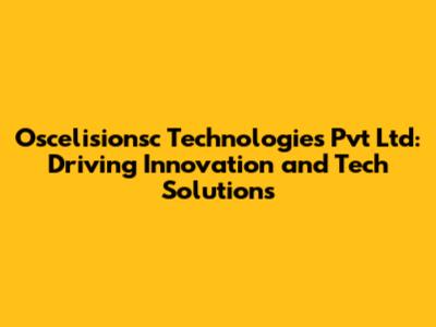 Oscelisionsc Technologies: Innovation And Tech Solutions