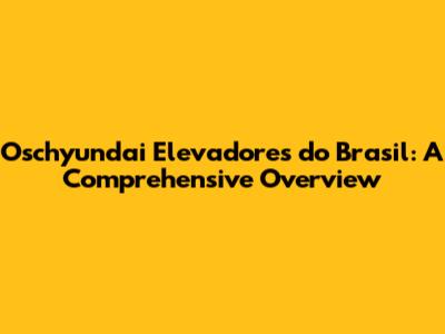 Oschyundai Elevadores Do Brasil: A Comprehensive Overview