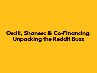 Hey guys! Let's dive into the fascinating world of Osciii, Shanesc, and Co-Financing, a trio that's been making waves across the internet, especially on Reddit. If you're scratching your head wondering what all the fuss is about, you're in the right place. We're going to break down these terms, explore their connections, and see what the Reddit community has to say. Prepare for a deep dive filled with insights, real-world examples, and a healthy dose of internet chatter. This article aims to provide a comprehensive overview, ensuring you understand the core concepts and their implications. Understanding these elements can be complex, so we will try to make this easier for everyone to understand.