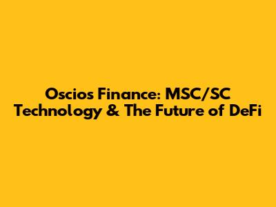 Oscios Finance: MSC/SC Technology & The Future Of DeFi