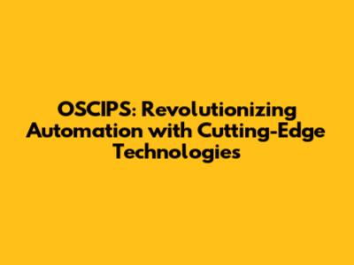 OSCIPS: Revolutionizing Automation With Cutting-Edge Technologies