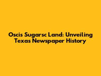 Oscis Sugarsc Land: Unveiling Texas Newspaper History