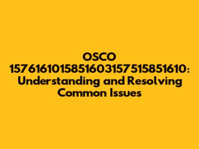 OSCO 1576161015851603157515851610: A Comprehensive Guide