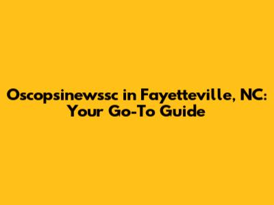 Oscopsinewssc In Fayetteville, NC: Your Go-To Guide