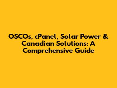 OSCOs, CPanel, Solar Power & Canadian Solutions