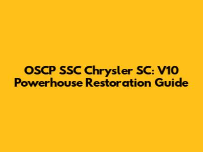 OSCP SSC Chrysler SC: V10 Powerhouse Restoration Guide